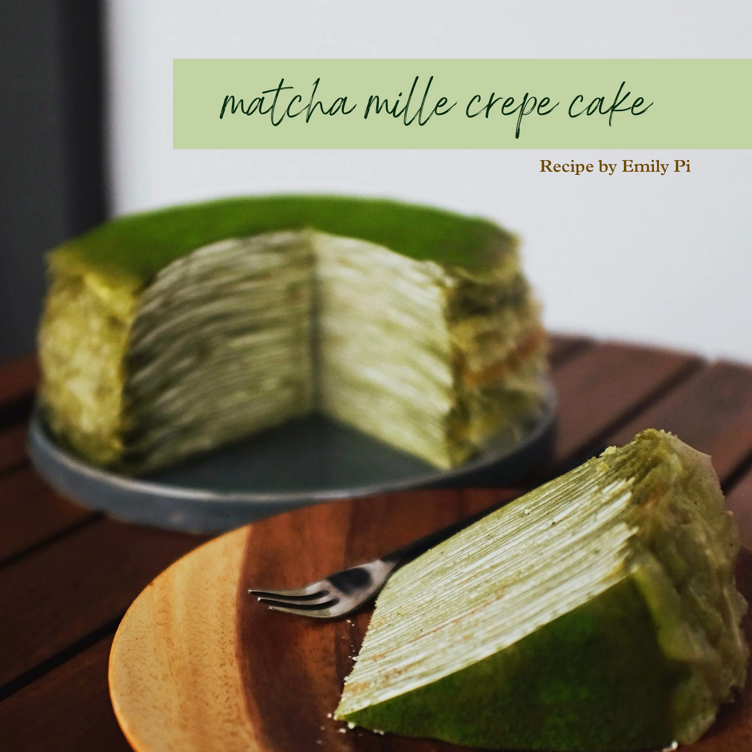 For the layout design, I decided on a muted green color scheme and created leaf graphics in order to match my crepe cake and set a relaxing tone.